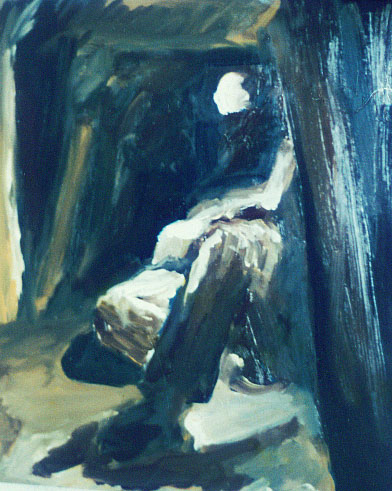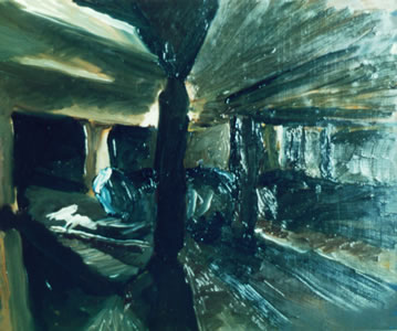 I was living near the Forest of Dean, many years ago, and one of the local freeminers let me go into the mine and paint while he worked. Nothing beats painting from life, capturing the essence of the moment; oil on board, approx 8" x 10".
